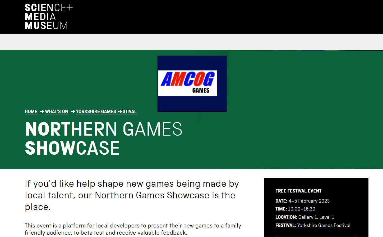 11th Februray 2023 : Yorkshire Games Festival VideoThanks to everyone who cam and saw us at the Bradford Science and Media MuseumThis video showcases some of the games as well as what I learned from the experience. 25th January 2023 : The Yorkshire Games FestivalCome and see is at Yorkshire Games Festival